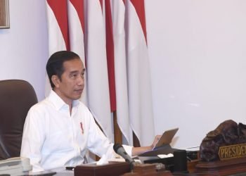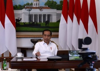 Presiden Jokowi memimpin rapat terbatas yang membahas mitigasi dampak covid-19 terhadap sektor pariwisata dan ekonomi kreatif melalui telekonferensi dari Istana ...