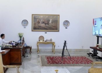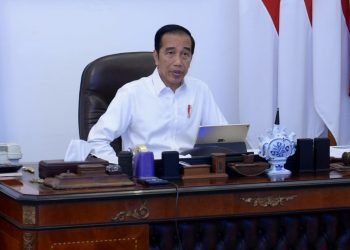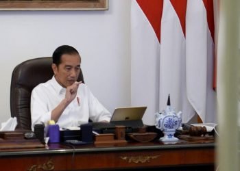 Presiden Jokowi memimpin rapat terbatas untuk mendengarkan dan membahas laporan Tim Gugus Tugas Covid-19 melalui telekonferensi dari Istana Merdeka, Jakarta, ...