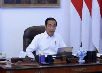 Presiden Jokowi memimpin rapat terbatas membahas efektivitas penyaluran program jaring pengaman sosial melalui telekonferensi dari Istana Merdeka, Jakarta, Selasa, 7 ...