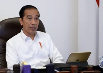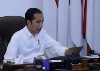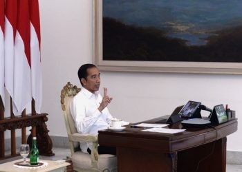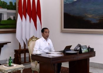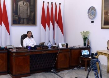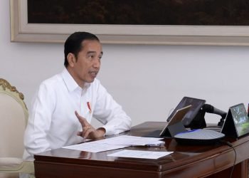 Presiden Jokowi memimpin rapat terbatas mengenai peningkatan rasio elektrifikasi di pedesaan dengan jajaran terkait melalui telekonferensi dari Istana Merdeka, Jakarta, ...
