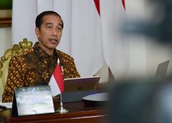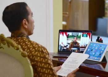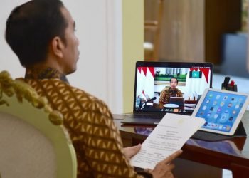Presiden Jokowi memimpin rapat terbatas membahas penanganan pandemi virus korona atau Covid-19 melalui telekonferensi di Istana Kepresidenan Bogor, Jawa Barat, ...