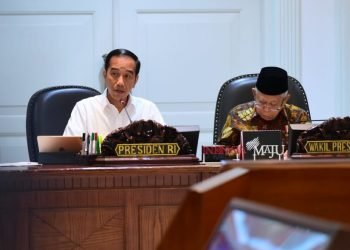 Presiden Jokowi memimpin rapat terbatas terkait akselerasi program tol laut di Kantor Presiden, Jakarta, Kamis, 5 Maret 2020.