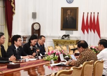 Presiden Joko Widodo menerima kunjungan Menteri Lingkungan Hidup Korea Selatan Cho Myung-Rae di Istana Merdeka, Jakarta, pada Selasa, 25 Februari ...