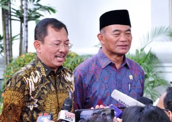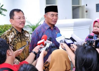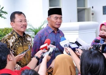 Menteri Kesehatan Terawan Agus Putranto dan Menteri Koordinator bidang Pembangunan Manusia dan Kebudayaan Muhadjir Effendi di Istana Negara, Jakarta, Senin, ...