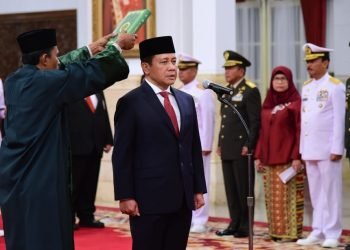 Presiden Jokowi melantik Laksamana Madya TNI Aan Kurnia sebagai Kepala Badan Keamanan Laut (Bakamla) di Istana Negara, Jakarta, Rabu, 12 ...