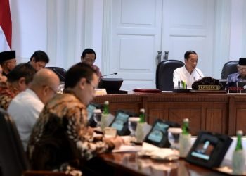 Presiden Jokowi memimpin rapat terbatas terkait ketersedian bahan baku bagi industri baja dan besi yang digelar di Kantor Presiden, Jakarta, ...