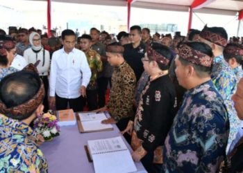 Presiden Joko Widodo menyampaikan apresiasi atas penandatanganan kurang lebih 1.300 kontrak kerja proyek-proyek nasional di lingkungan Kementerian Pekerjaan Umum dan ...