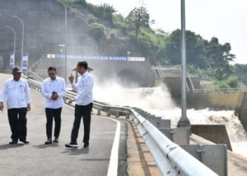 Presiden Joko Widodo meresmikan terowongan Nanjung yang berada di kawasan hulu Citarum di Curug Jompong, Kabupaten Bandung, Jawa Barat pada ...