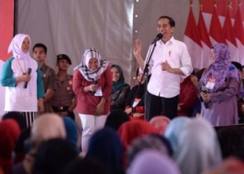 Presiden Joko Widodo menyerahkan bantuan Program Keluarga Harapan (PKH) Tahap I Tahun 2020 di Lapangan Rajawali, Kota Cimahi, pada Rabu, ...