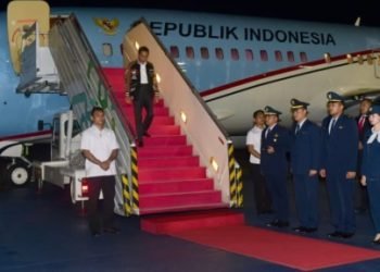 Setelah menempuh penerbangan selama 8 jam dari Terminal Kepresidenan Bandara Internasional Abu Dhabi, Persatuan Emirat Arab, Pesawat Kepresidenan Indonesia-1 yang ...