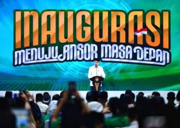 Presiden Joko Widodo menghadiri acara Inaugurasi Menuju Ansor Masa Depan yang diselenggarakan di Istora Senayan, Jakarta, pada Senin, 27 Mei ...