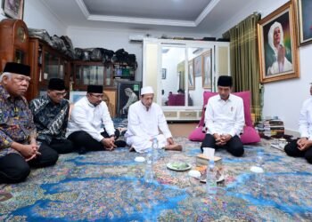 Presiden Joko Widodo bertakziah ke rumah duka almarhumah Syarifah Salma binti Hasyim bin Yahya istri dari pendakwah sekaligus anggota Dewan ...