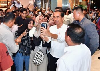 Dalam kunjungan tidak terjadwalnya, Presiden Joko Widodo menyapa warga Kota Kendari, Provinsi Sulawesi Tenggara di pusat perbelanjaan The Park pada ...