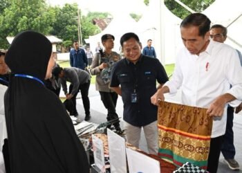 Presiden Joko Widodo memuji produk-produk yang dihasilkan oleh para ibu nasabah program Mekaar (membina ekonomi keluarga sejahtera) binaan Permodalan Nasional ...