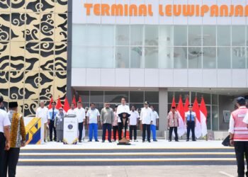 Presiden Joko Widodo didampingi Ibu Iriana Joko Widodo meresmikan dua terminal tipe A di Provinsi Jawa Barat, pada Sabtu, 3 ...