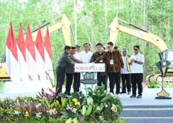 Presiden Joko Widodo melakukan peletakan batu pertama atau groudbreaking pembangunan Sentra Unggul Nusantara (SUN) Hub di Kawasan Ibu Kota Nusantara (IKN), Kabupaten ...
