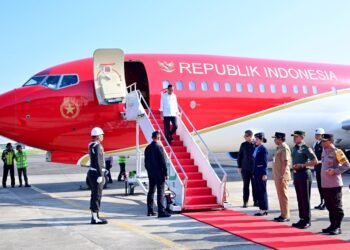 Presiden Joko Widodo tiba di Pangkalan Utama TNI AD (Lanumad) Ahmad Yani, Kota Semarang untuk melakukan kunjungan kerja di Provinsi ...