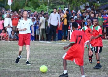 Main Sepak Bola dengan Pelajar di Biak Numfor, Presiden: Ini Bentuk Motivasi untuk Mereka