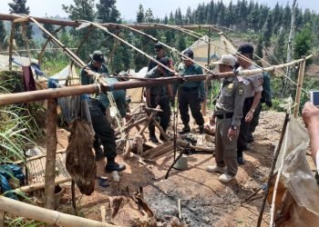 Polsek Lengkong Polres Sukabumi Polda Jabat bersama anggota mendampingi Pihak Perum Perhutani KPH SUKABUMI Giat Penertiban Tambang Liar di wilayah ...