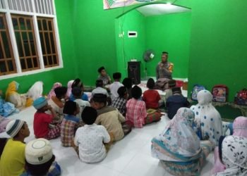 Keerom – Dengan membagi ilmu dan pengetahuan Keagamaan Kanit Binmas Polsek Skanto Aipda Imam Ghozali Mengajar Mengaji di Muhola Fatkhun ...