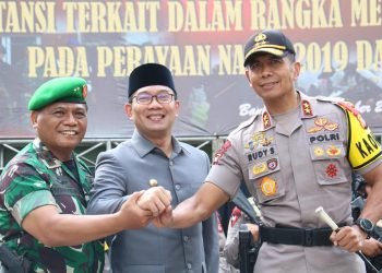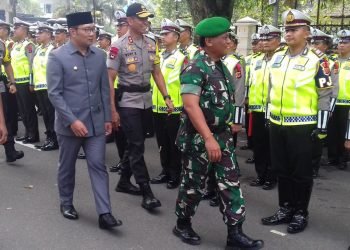 Di depan Gedung Sate, Gubernur Jawa Barat, Pangdam III Siliwangi dan Kapolda Jabar mengikuti apel gelar pasukan “Operasi Lilin Lodaya ...