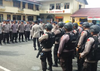 TARAKAN – 1 SSK dari Satbrimob Polda Kalimantan Utara laksanakan pengamanan aksi damai yang dilaksanakan oleh Lembaga Adat Tidung Ulun ...