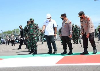 Nusa Tenggara Barat – Panglima TNI Marsekal Hadi Tjahjanto dan Kapolri Jenderal Listyo Sigit Prabowo meninjau langsung Sirkuit Mandalika, Lombok, ...
