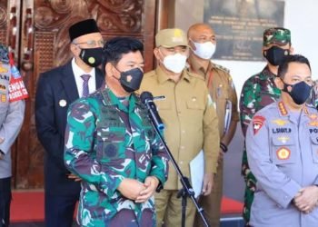 Aceh – Panglima TNI Marsekal Hadi Tjahjanto dan Kapolri Jenderal Listyo Sigit Prabowo memimpin rapat Forum Komunikasi Pimpinan Daerah (Forkopimda) ...
