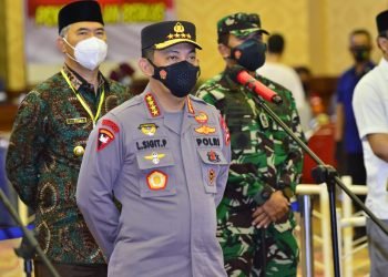 JAMBI – Panglima TNI Marsekal Hadi Tjahjanto bersama Kapolri Jenderal Listyo Sigit Prabowo memimpin rapat evaluasi penanganan dan pengendalian Covid-19 ...