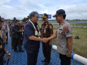 Irwasda Polda Kalimantan Selatan (Kalsel) Kombes Pol Drs. Djoko Poerbohadijojo, M.Si. menyambut kedatangan Wakil Jaksa Agung RI Dr. Arminsyah, S.H., ...