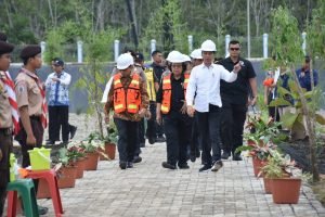 Presiden Republik Indonesia Ir. H. Joko Widodo didampingi sejumlah Menteri dan Gubernur Kalimantan Selatan H. Sahbirin Noor, melakukan penanaman pohon ...