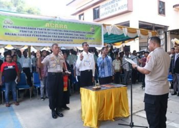 Jayapura Kota – Bertempat dihalaman Apel Mapolresta Jayapura Kota telah dilaksanakan acara Penandatangan Pakta Integritas dan Pengambilan Sumpah Janji Panitia, ...