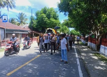 Turut Belasungkawa, Bhabinkamtibmas Polsek Banawa Polres Donggala Polda Sulteng Ikut Gotong Keranda Jenazah Warga Binaanya
