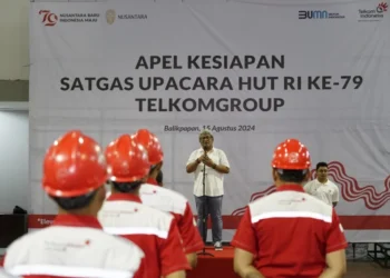 Jelang Hari Kemerdekaan RI, Telkom gelar Apel Kesiapan untuk mengamankan infrastruktur dan layanan telekomunikasi.Direktur Network & IT Solution Telkom Herlan ...
