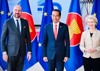 Presiden Joko Widodo menghadiri Konferensi Tingkat Tinggi (KTT) Peringatan 45 Tahun ASEAN-Uni Eropa di Gedung Europa, Brussels, Rabu siang, 14 ...