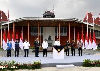 Sebelum lepas landas menuju Kabupaten Malang, Provinsi Jawa Timur untuk melakukan kunjungan kerja, Presiden Joko Widodo meresmikan revitalisasi fasilitas Pangkalan ...