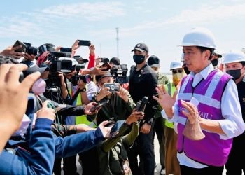 Presiden Joko Widodo didampingi Ibu Iriana Joko Widodo meresmikan pembangunan Terminal Kijing Pelabuhan Pontianak yang terletak di Kabupaten Mempawah, Provinsi ...