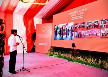 Presiden Joko Widodo melanjutkan kunjungan kerja di Provinsi Aceh dengan melakukan peninjauan vaksinasi di Pondok Pesantren/Dayah Istiqamatuddin Darul Mu’Arrif, Kabupaten ...