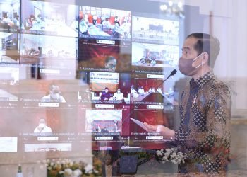Presiden Joko Widodo secara resmi membuka acara Sarasehan 100 Ekonom Indonesia yang dilakukan melalui konferensi video di Istana Negara, Jakarta, ...