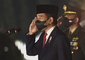Presiden Joko Widodo memimpin apel kehormatan dan renungan suci di Taman Makam Pahlawan (TMP) Nasional Utama, Kalibata, Jakarta, pada Selasa, ...
