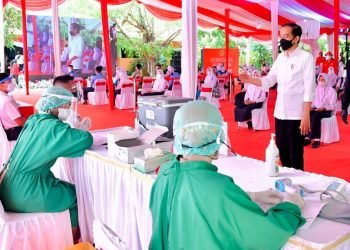 Presiden Joko Widodo Tinjau Langsung Vaksinasi Covid-19 bagi Pelajar di Madiun