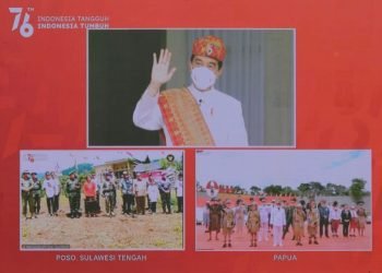 Presiden Joko Widodo menyempatkan diri untuk menyapa masyarakat Poso, Sulawesi Tengah dan Merauke, Papua melalui konferensi video setelah Upacara Detik-Detik ...