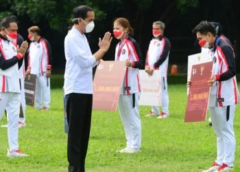 Presiden Joko Widodo menerima kontingen Indonesia yang berlaga di Olimpiade Tokyo 2020, sekaligus menyerahkan bonus apresiasi bagi para atlet dan ...