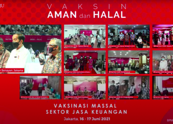 Presiden RI Joko Widodo (Jokowi), Rabu (16/04/2021), meninjau pelaksanaan vaksinasi COVID-19 massal bagi pelaku di sektor jasa keuangan, yang digelar ...