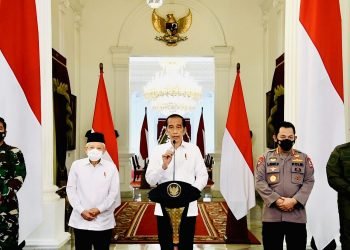 Presiden Republik Indonesia, Joko Widodo menyampaikan pernyataan terkait gugurnya prajurit KRI Nanggala 402 dan Kabinda Papua di Istana Merdeka, Jakarta ...