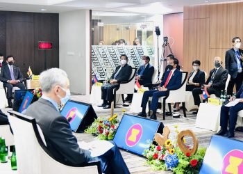 Pertemuan tersebut digelar di Multipurpose Room, Gedung Sekretariat ASEAN, Jakarta, pada Sabtu, 24 April 2021.