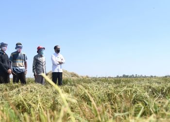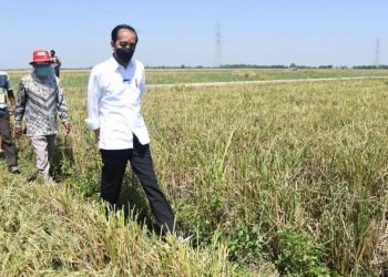 Presiden Republik Indonesia, Joko Widodo meninjau panen padi dan berdialog dengan petani di Desa Wanasari, Kecamatan Bangodua, Kabupaten Indramayu, Provinsi ...