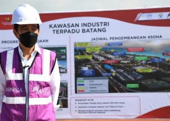 Presiden Joko Widodo kembali mengunjungi Kawasan Industri Terpadu (KIT) Batang yang berlokasi di Desa Ketanggan, Kecamatan Gringsing, Kabupaten Batang, Jawa ...