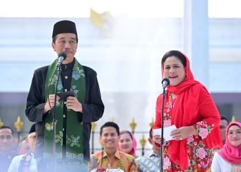 Presiden Joko Widodo dan Ibu Iriana Joko Widodo membuka acara Istana Berkebaya yang digelar di Jalan Medan Merdeka Utara, tepat ...