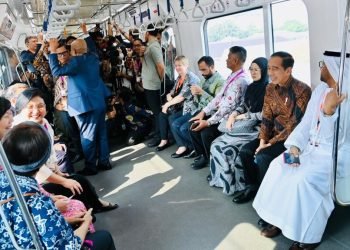 Presiden Joko Widodo mengundang sejumlah duta besar ASEAN dan mitra untuk mencoba moda raya terpadu (MRT) dari Stasiun Bundaran Hotel ...